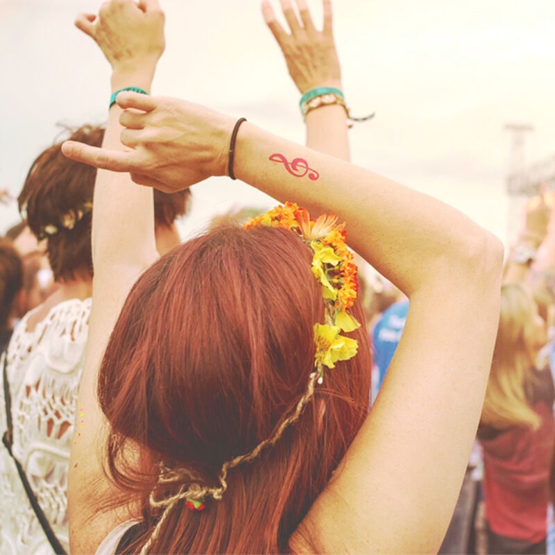 “J’ai posé la clé de sol rose sur ma clavicule avant d’assister au Montreux Jazz Festival. Tout le monde me demandait si c’était un vrai tatouage ! Il a tenu 3 jours malgré la chaleur et la foule. Je l’ai adoré, il allait parfaitement avec ma robe noire.”