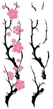 2 tatouages décalcomanie exclusifs motif branches fleuries. En l'occurence, il s'agit ici de 2 branches de cerisier du Japon (une blanche et une rose). Consacré par le peuple nippon pour sa beauté et son caractère éphémère, cet arbre est aussi le symbole des samouraïs. C'est un magnifique motif plus vrai que nature qui rappelle que la vie est belle et qu'il faut l'apprécier.