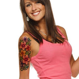 Grand tatouage décalcomanie exclusif représentant des fleurs de cerisiers multicolores. Elles sont considérées au Japon comme un symbole d’évolution, de beauté et de cycle de vie.
