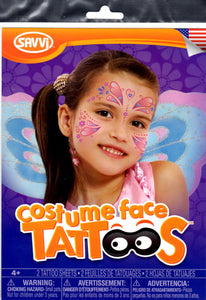 Pochette Savvi regroupant 2 planches de tatouages temporaires Costume face tattoos.
