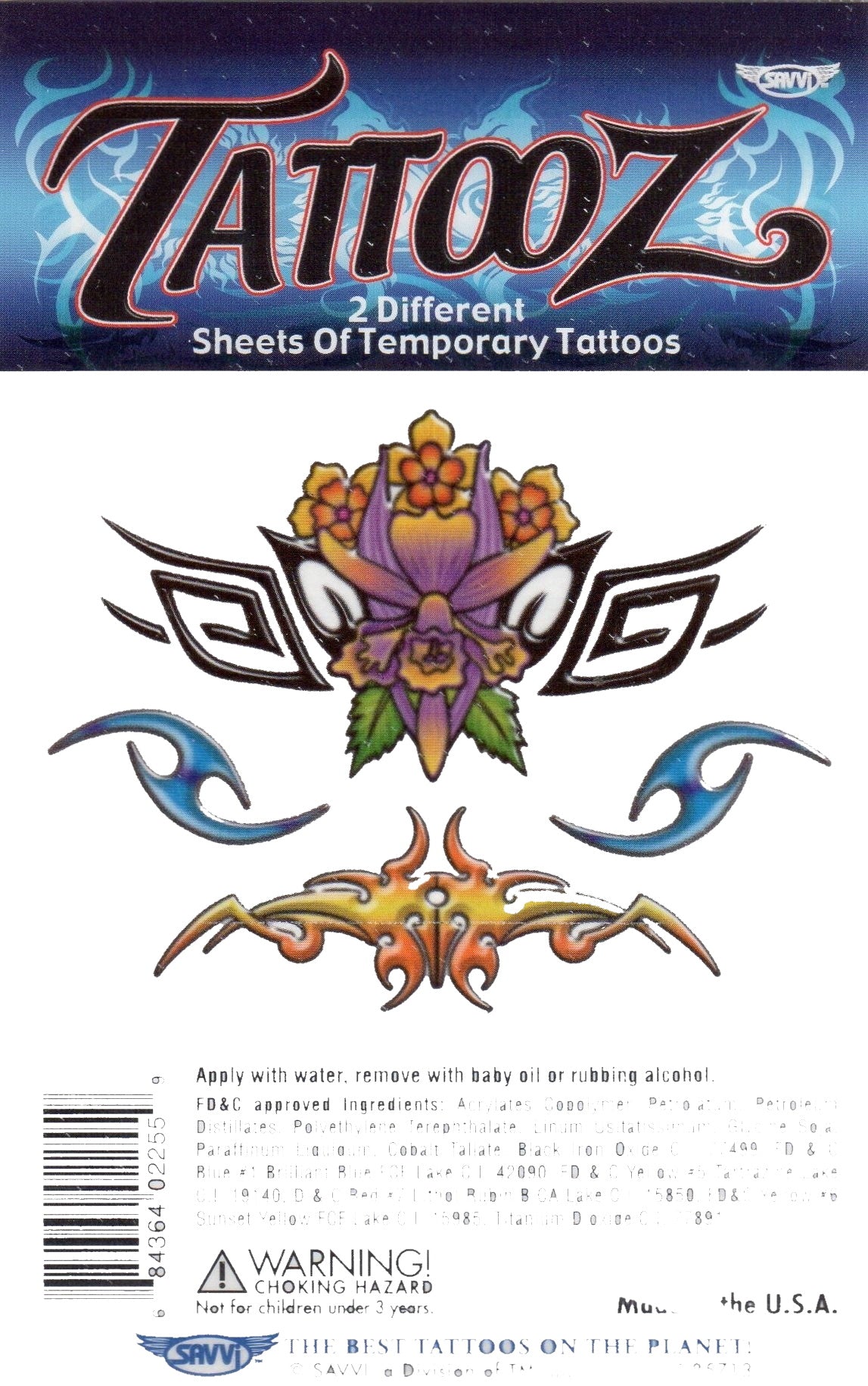Petite pochette regroupant 11 tatouages décalcomanies pour les ados : des motifs tribaux, croix et flammes colorées.