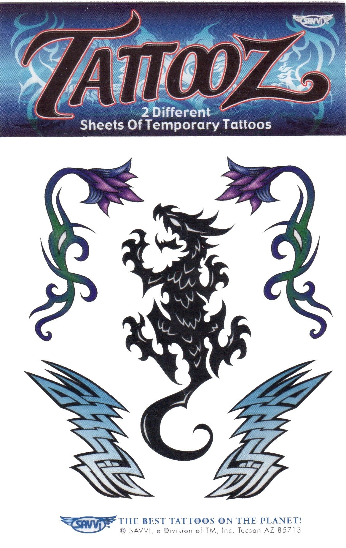 Petite pochette regroupant 12 tatouages décalcomanies pour les ados : des motifs tribaux, stylés en bleu et violet pour les filles et les garçons.