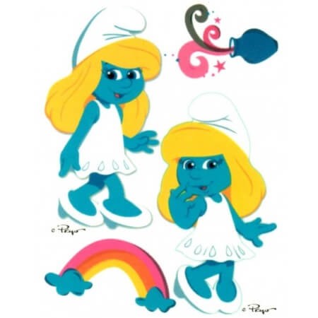 Pack regroupant 10 tatouages décalcomanies des schtroumpfs 10 * 6,8 cm : le grand schtroumpf, la schtroumpfette, le schtroumpf à lunette, le schtroumpf grognon...