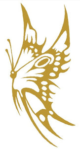 Grand tattoo doré représentant un papillon en plein envol. Un tatouage majestueux et raffiné qui fera sensation quand il se posera délicatement sur votre épaule.