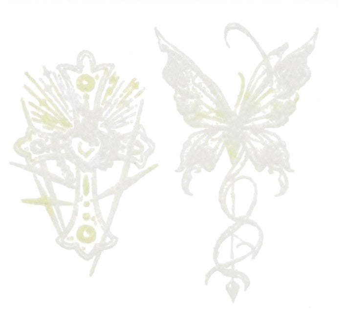 Motifs : croix cœur rayonnante & papillon aux ailes déployées