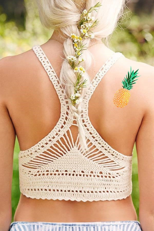 Ajoutez une touche d'élégance à votre look estival avec notre tatouage temporaire ananas coloré de 8 cm, et découvrez également notre Tatouage Japonais Carpe Koi pour Femme, idéal pour apporter un souffle artistique à votre style.